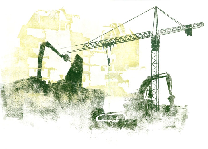 Stadtansichten 13, 2012 ÖL / Linoldruck, 60 x 42 cm